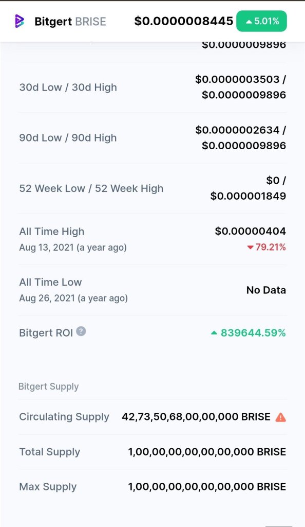 Bitgert coin को Brise के नाम से भी जाना जाता है।